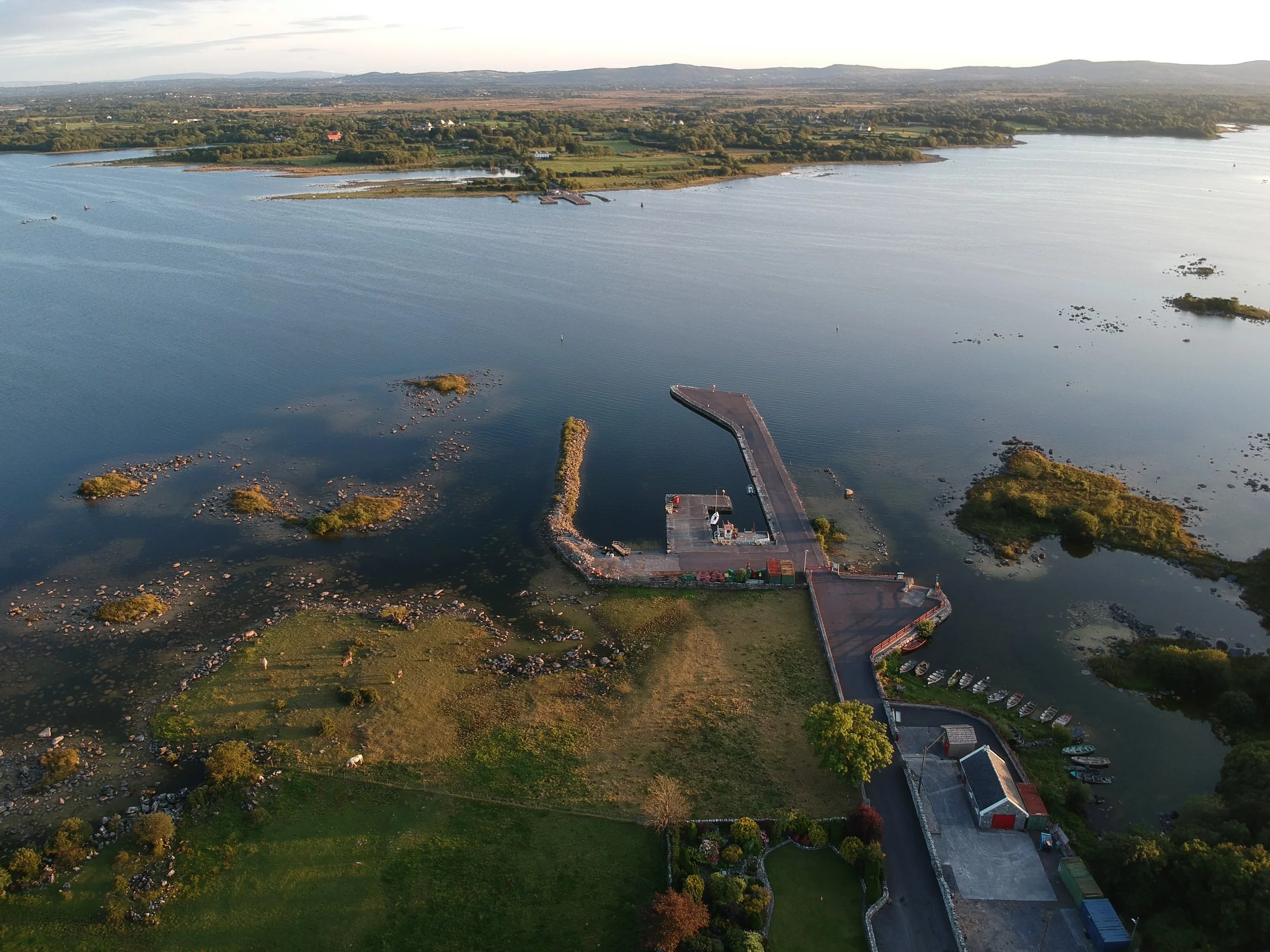 Lough Corrib stretches 176 square kilometres northward from Galway city into the heart of Connemara. Kilbeg Pier sits on the quieter eastern shore — away from the tourist trail, in a landscape of small fields, stone walls and big skies.